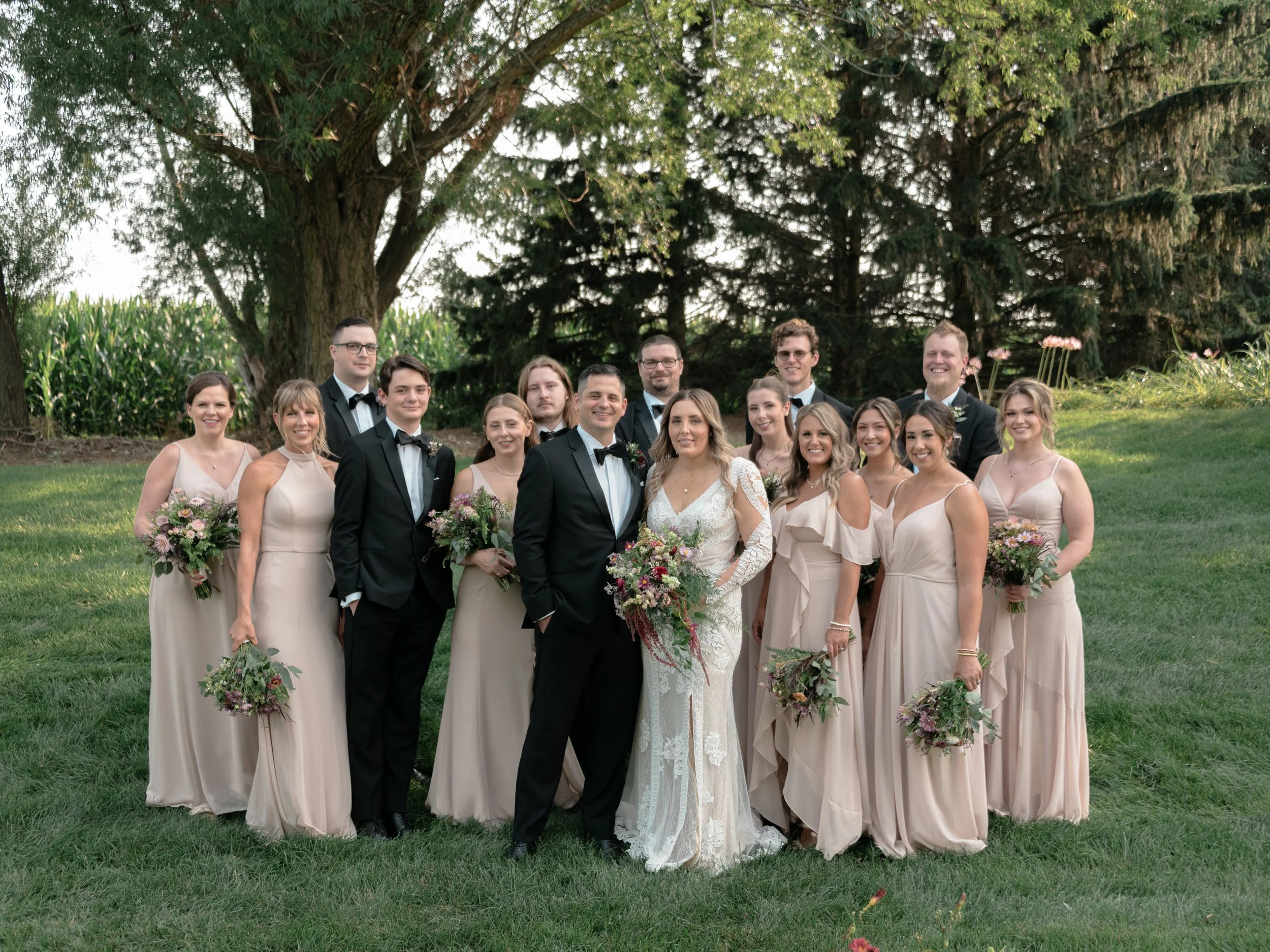 The vibrant sunset over the corn stalks, enveloping everything in a pink glow, was truly a magical backdrop for your celebration. It was a moment of sheer beauty, with the sun setting so intensely that it felt like a perfect reflection of the love and warmth you both bring to each other’s lives. Seeing you and Chris dance in that enchanting light, with the aperol spritz in your hand, was a highlight that I will always treasure.